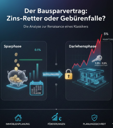 Für kleinere Summen (z. B. 30.000 € bis 50.000 € für eine neue Heizung oder ein Dach) ist ein Bausparvertrag ideal. Du sparst dir den Gang zur Bank für einen teuren Ratenkredit.