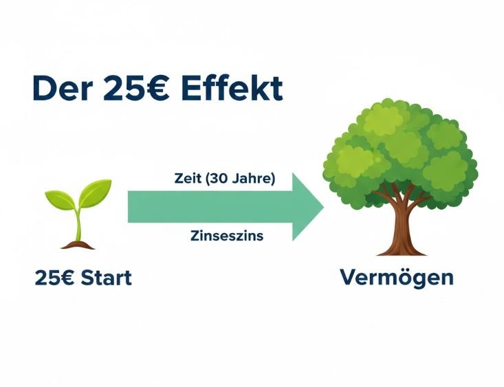 4. Sind 25 Euro wirklich genug? Absolut. Es geht darum, die Gewohnheit aufzubauen. Wenn Ihr Einkommen steigt, können Sie die Rate jederzeit anpassen. Der Zinseszins unterscheidet nicht zwischen arm und reich – er braucht nur Zeit.